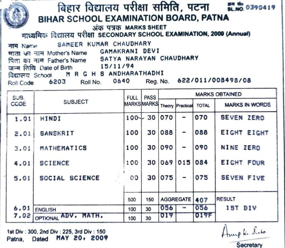 | Exam | Full Marks | Pass Marks | Marks Obtained |