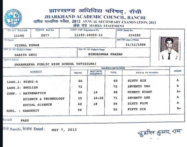 | Exam | Full Marks | Pass Marks | Marks Obtained |