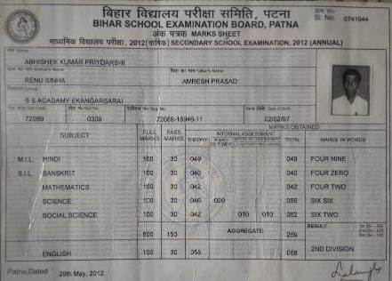 | Exam | Full Marks | Pass Marks | Marks Obtained |