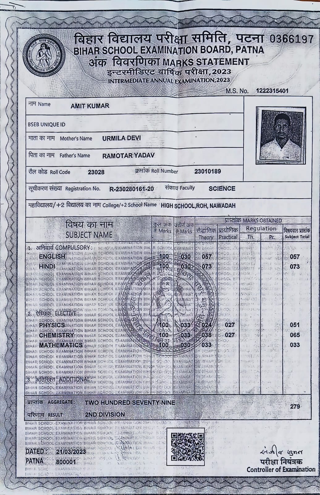 | Exam | Full Marks | Pass Marks | Marks Obtained |
