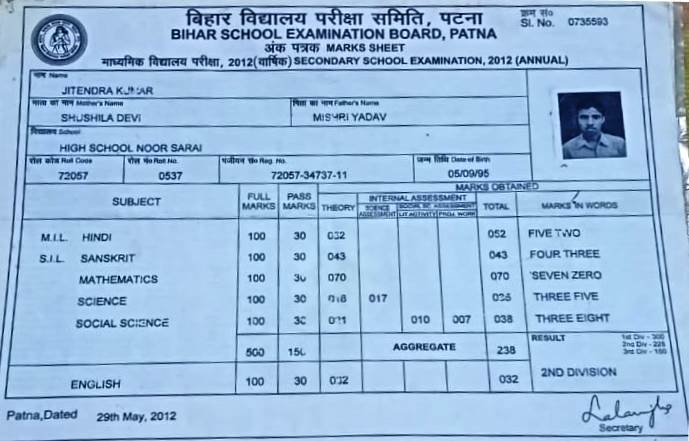 | Exam | Full Marks | Pass Marks | Marks Obtained |