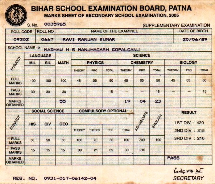 | Exam | Full Marks | Pass Marks | Marks Obtained |