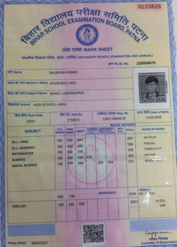 | Exam | Full Marks | Pass Marks | Marks Obtained |