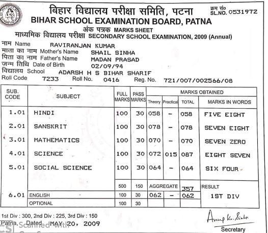 | Exam | Full Marks | Pass Marks | Marks Obtained |