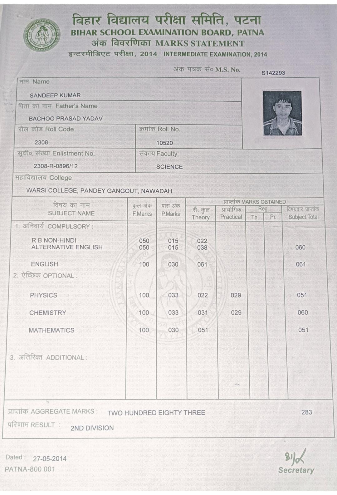 | : | Bachchu Prasad Yadav | |