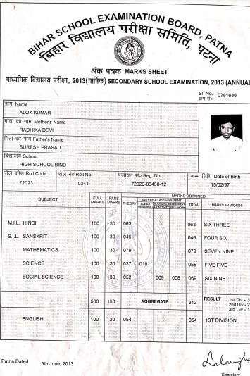 | Exam | Full Marks | Pass Marks | Marks Obtained |