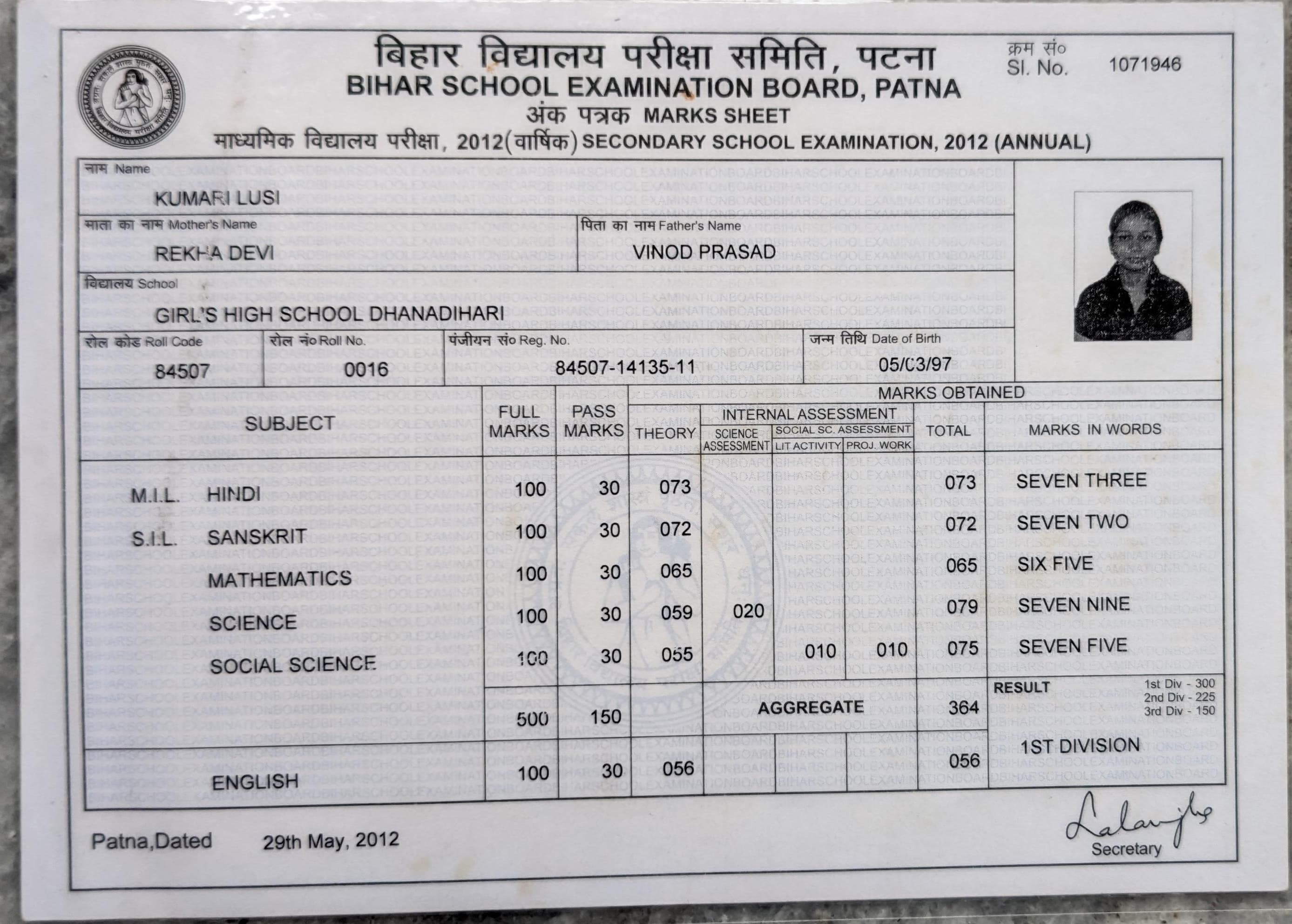 | Exam | Full Marks | Pass Marks | Marks Obtained |