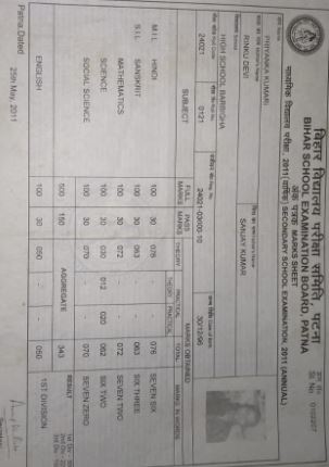| Exam | Full Marks | Pass Marks | Marks Obtained |
