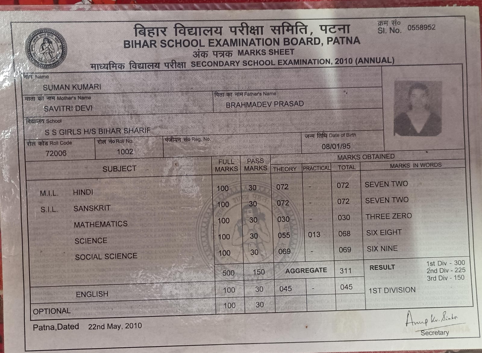 | Exam | Full Marks | Pass Marks | Marks Obtained |