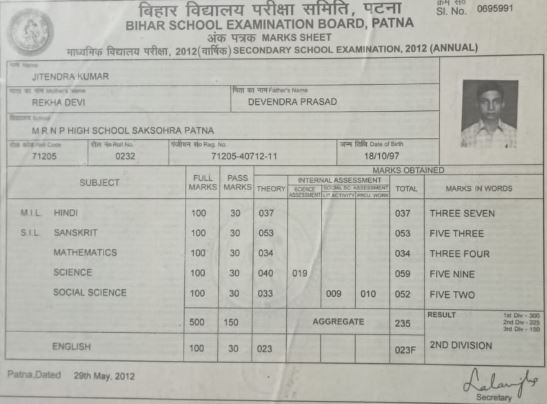 | Exam | Full Marks | Pass Marks | Marks Obtained |