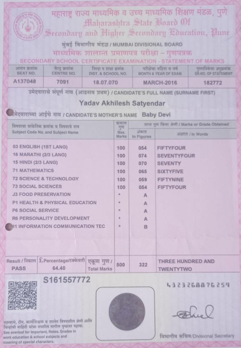 | Exam | Full Marks | Pass Marks | Marks Obtained |