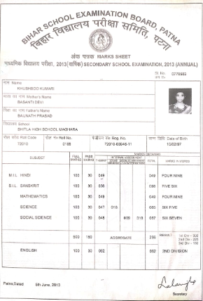 | Exam | Full Marks | Pass Marks | Marks Obtained |