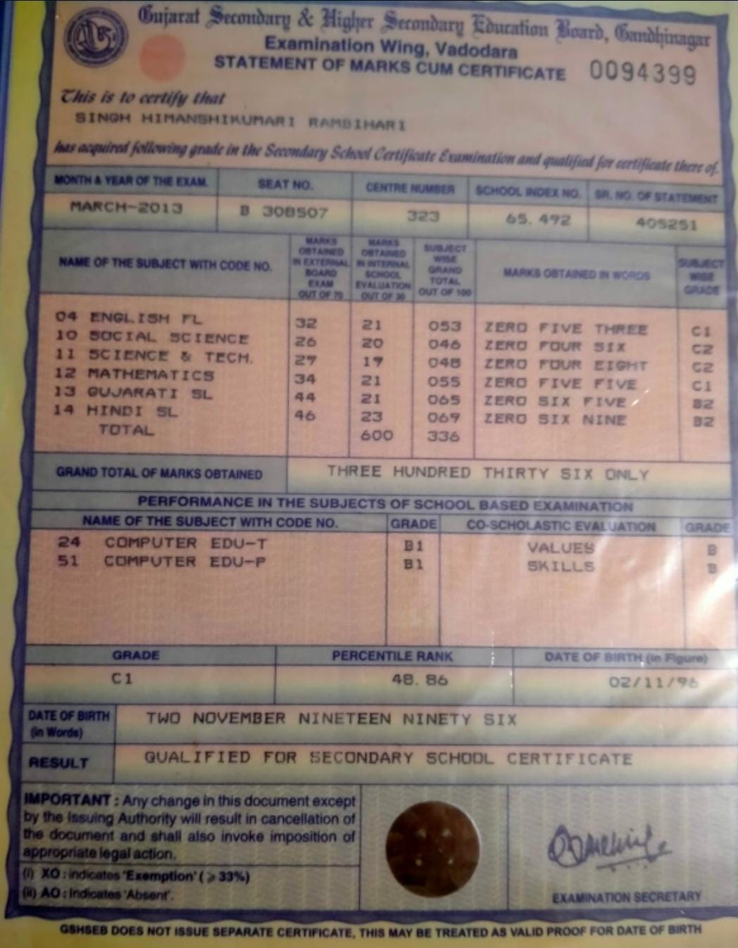 | Exam | Full Marks | Pass Marks | Marks Obtained |