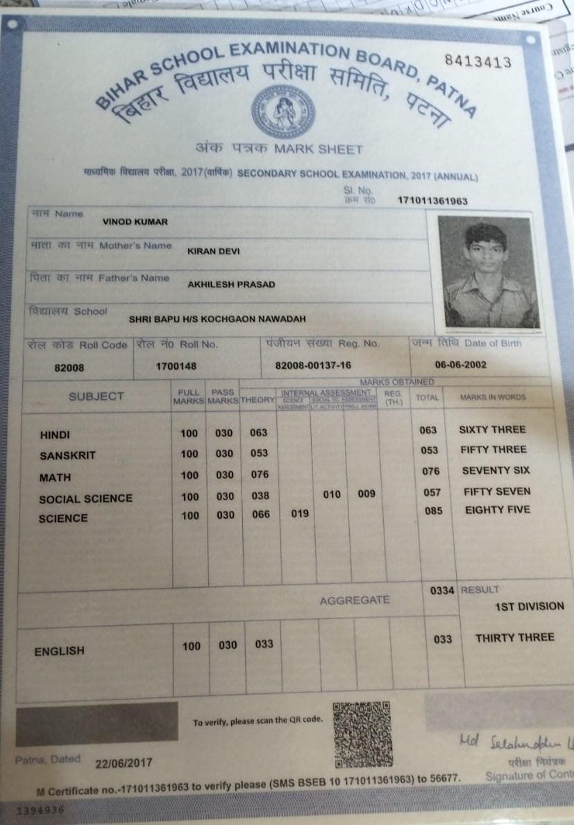 | Exam | Full Marks | Pass Marks | Marks Obtained |