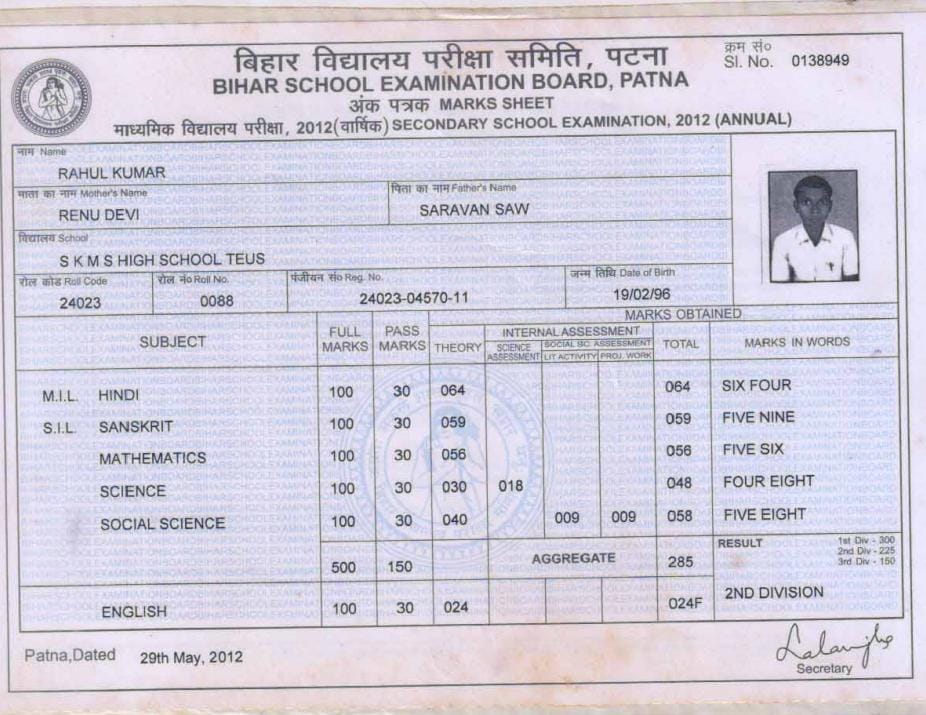 | Exam | Full Marks | Pass Marks | Marks Obtained |