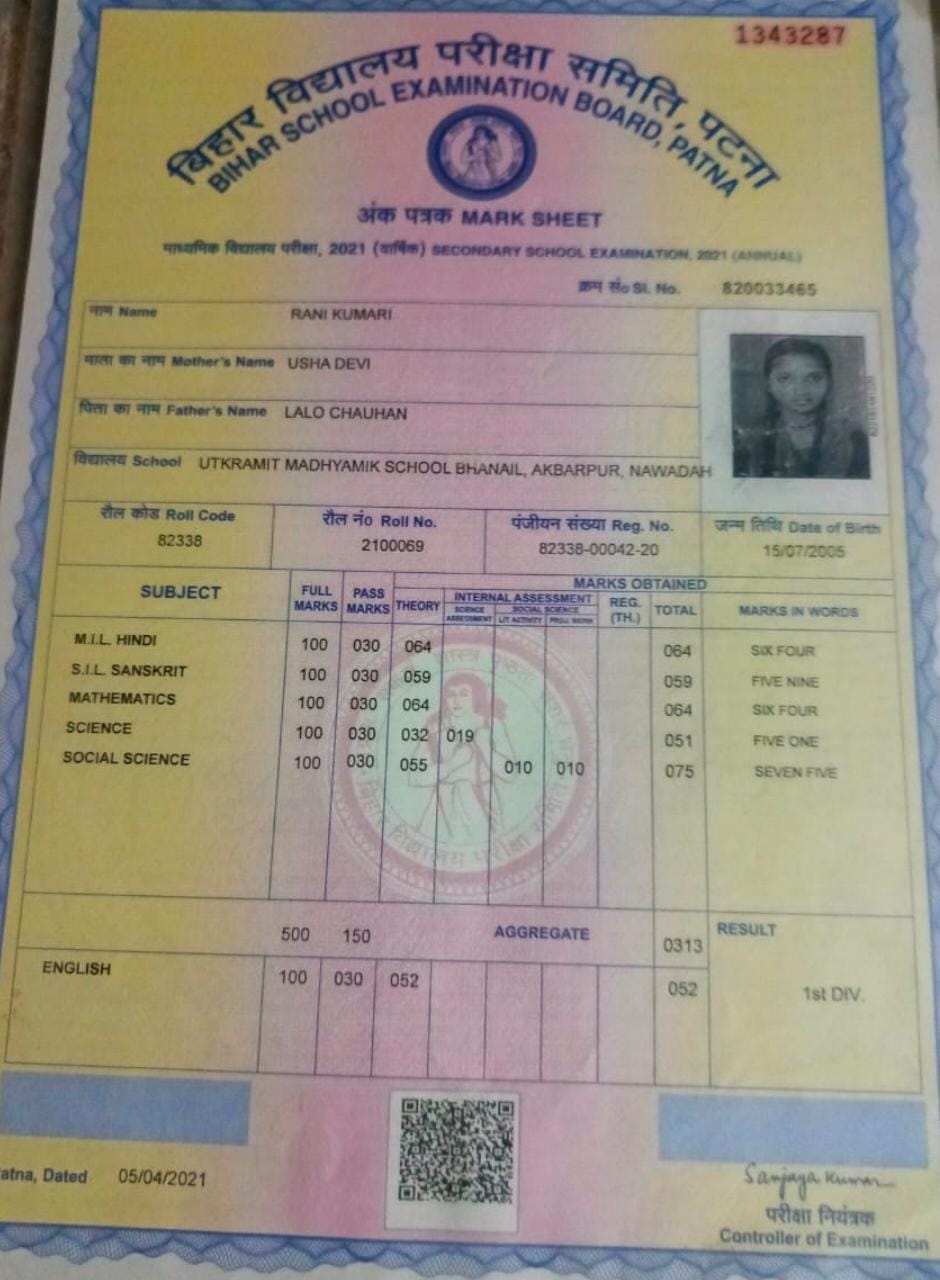 | Exam | Full Marks | Pass Marks | Marks Obtained |