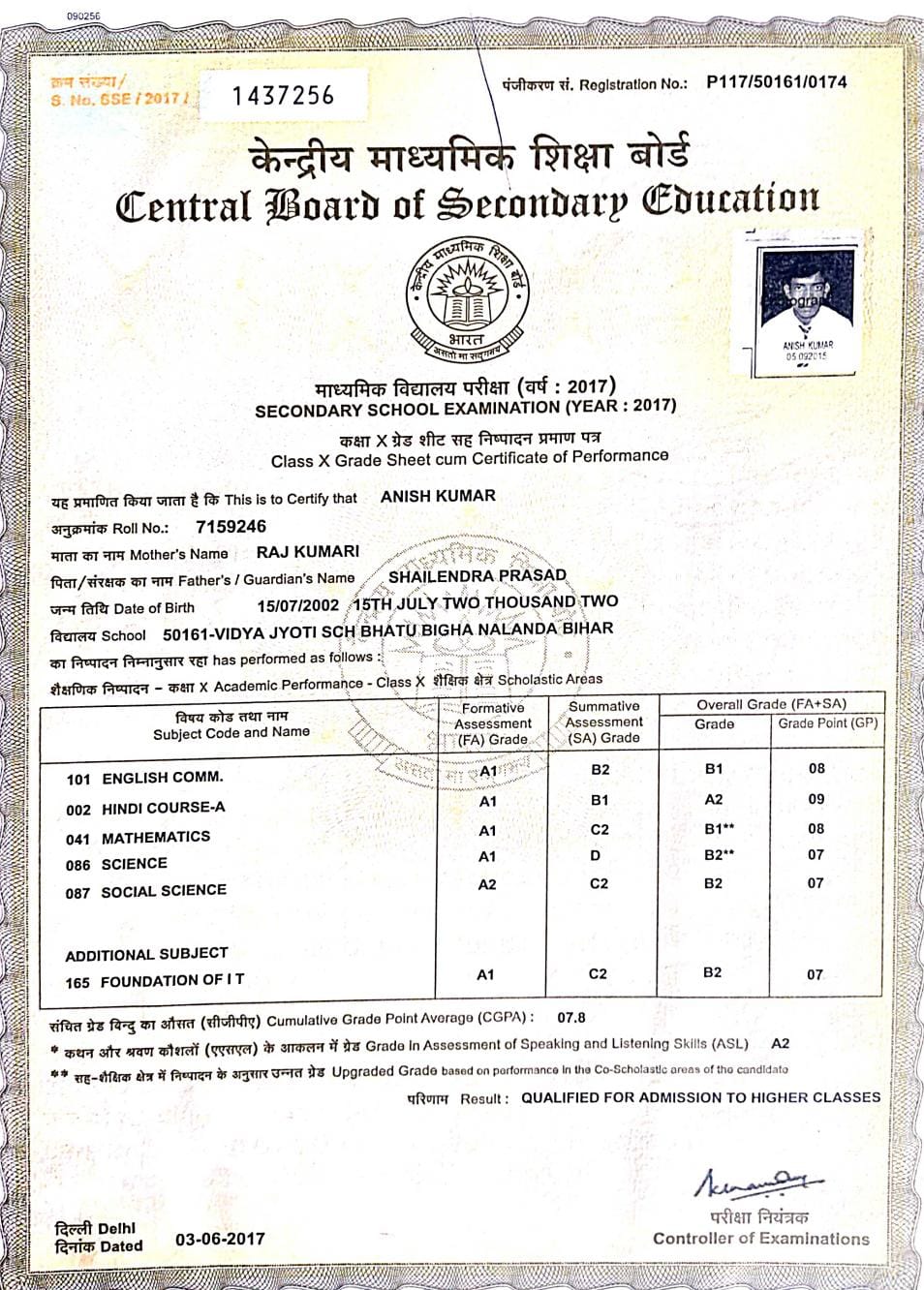 | Exam | Full Marks | Pass Marks | Marks Obtained |
