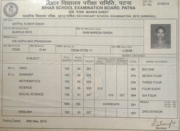 | Exam | Full Marks | Pass Marks | Marks Obtained |