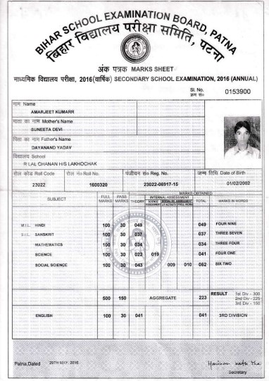 | Exam | Full Marks | Pass Marks | Marks Obtained |