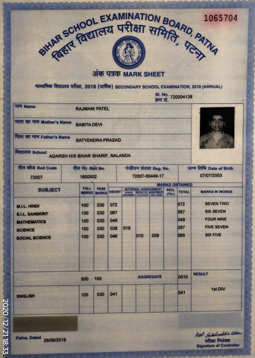 | Exam | Full Marks | Pass Marks | Marks Obtained |