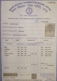 | Exam | Full Marks | Pass Marks | Marks Obtained |