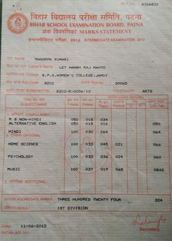 | Exam | Full Marks | Pass Marks | Marks Obtained |