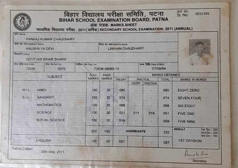 | Exam | Full Marks | Pass Marks | Marks Obtained |