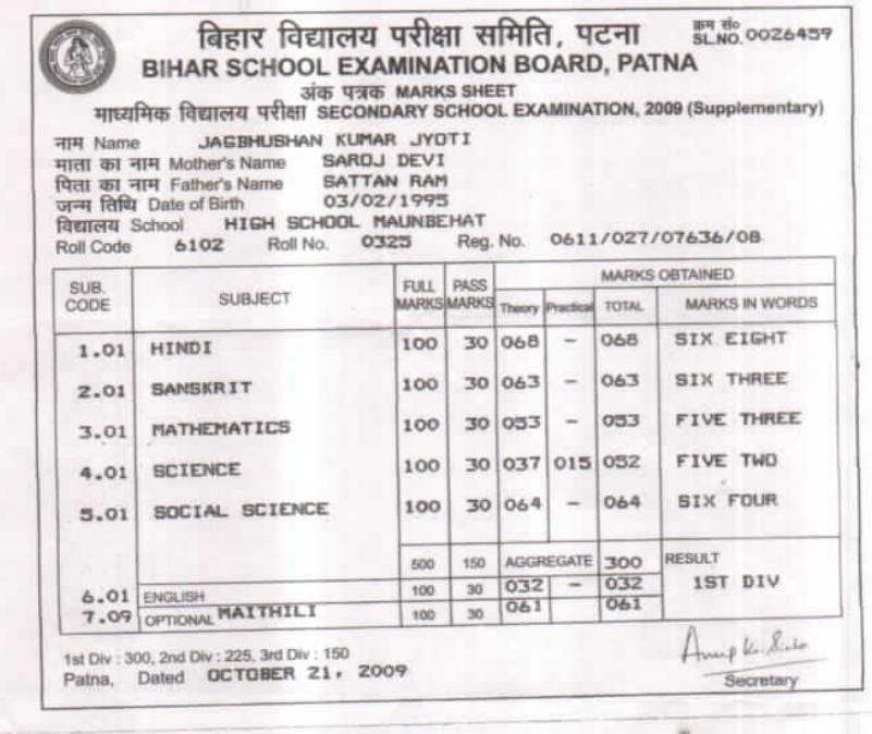 | Exam | Full Marks | Pass Marks | Marks Obtained |