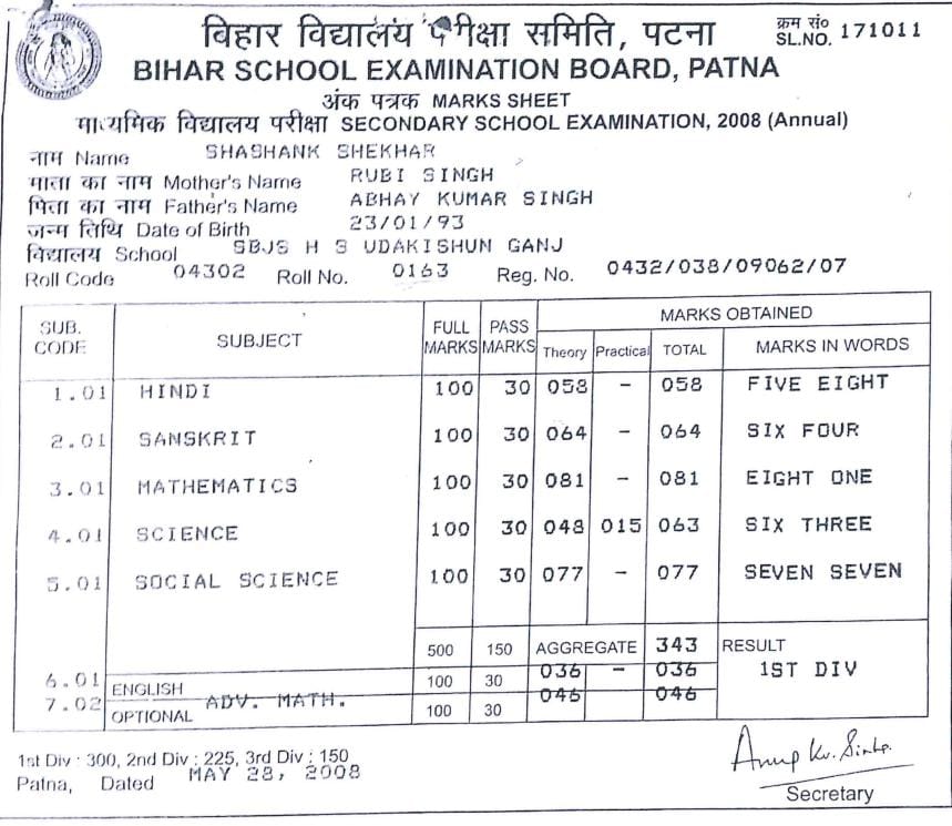 | Exam | Full Marks | Pass Marks | Marks Obtained |