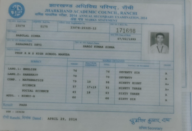 | Exam | Full Marks | Pass Marks | Marks Obtained |