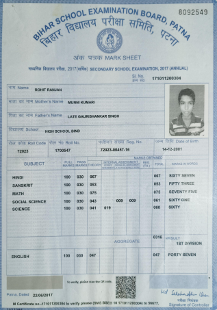 | Exam | Full Marks | Pass Marks | Marks Obtained |