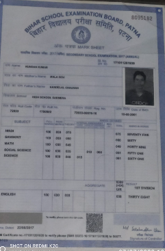 | Exam | Full Marks | Pass Marks | Marks Obtained |