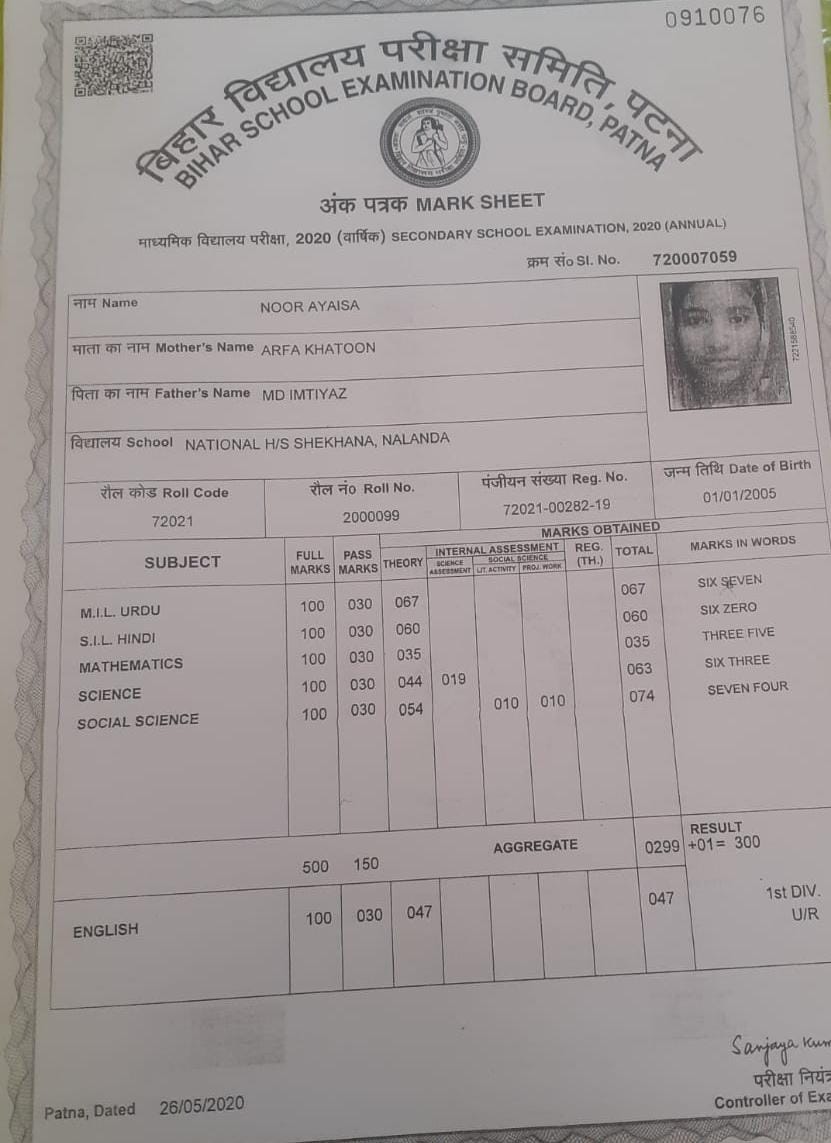 | Exam | Full Marks | Pass Marks | Marks Obtained |