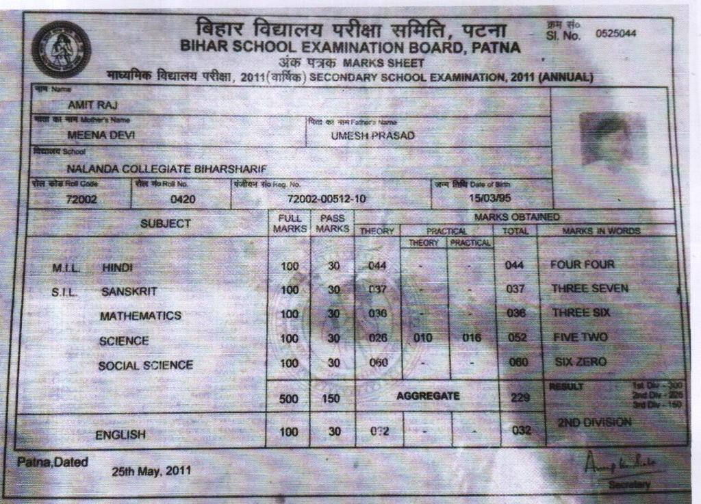 | Exam | Full Marks | Pass Marks | Marks Obtained |