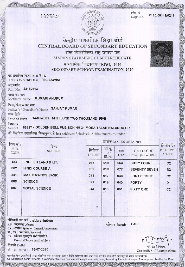 | Exam | Full Marks | Pass Marks | Marks Obtained |