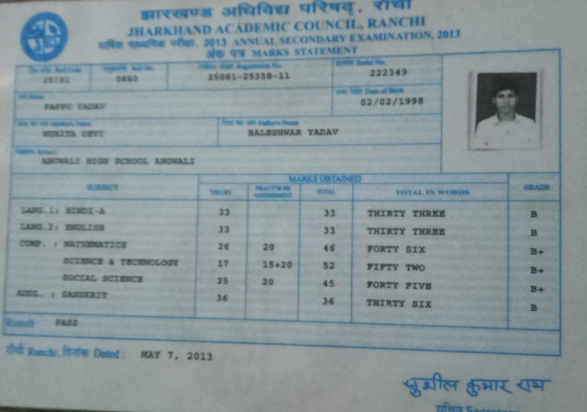 | Exam | Full Marks | Pass Marks | Marks Obtained |