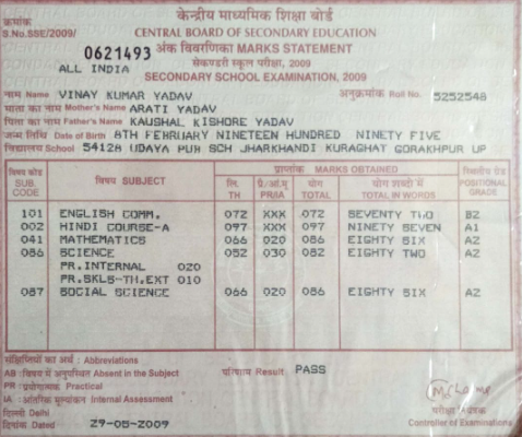 | Exam | Full Marks | Pass Marks | Marks Obtained |