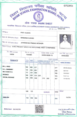 | Exam | Full Marks | Pass Marks | Marks Obtained |