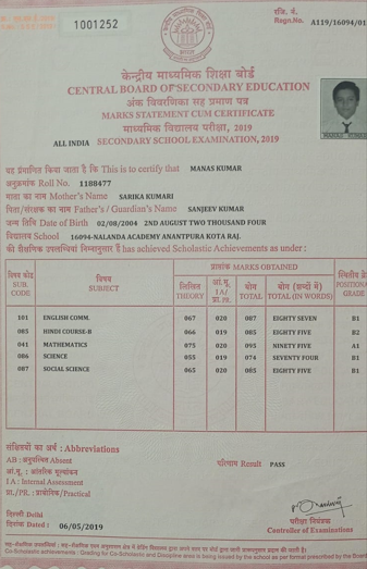 | Exam | Full Marks | Pass Marks | Marks Obtained |