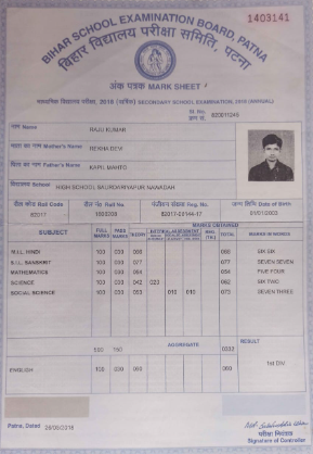 | Exam | Full Marks | Pass Marks | Marks Obtained |