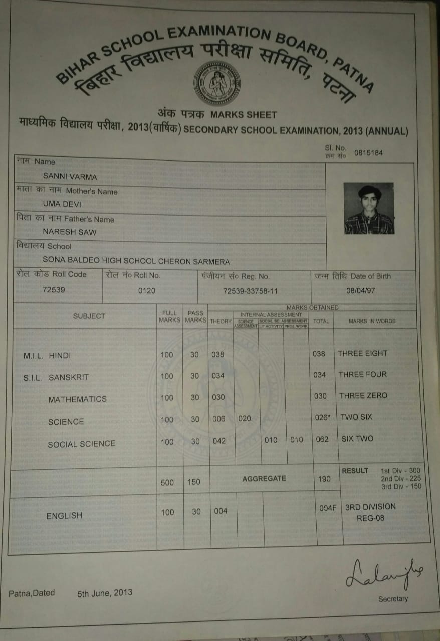 | Exam | Full Marks | Pass Marks | Marks Obtained |
