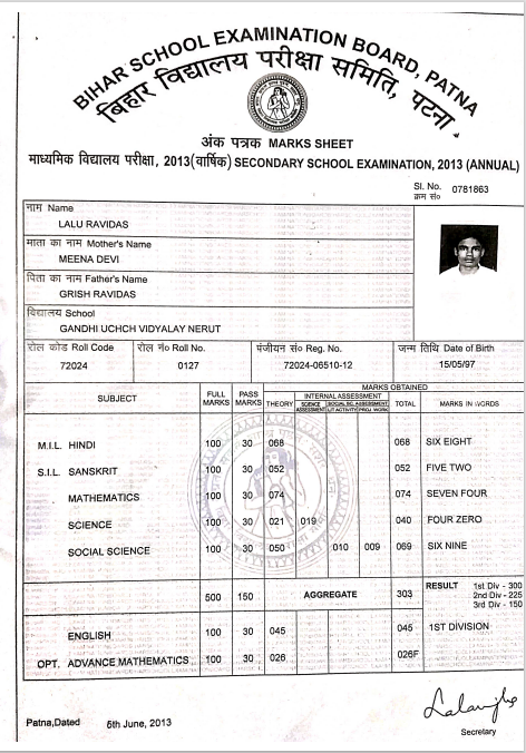 | Exam | Full Marks | Pass Marks | Marks Obtained |