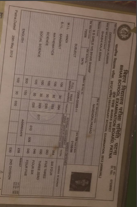 | Exam | Full Marks | Pass Marks | Marks Obtained |
