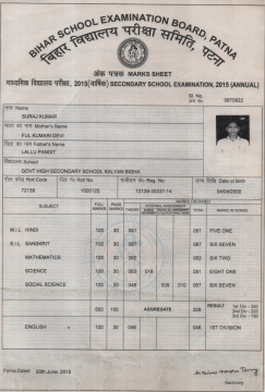 | Exam | Full Marks | Pass Marks | Marks Obtained |