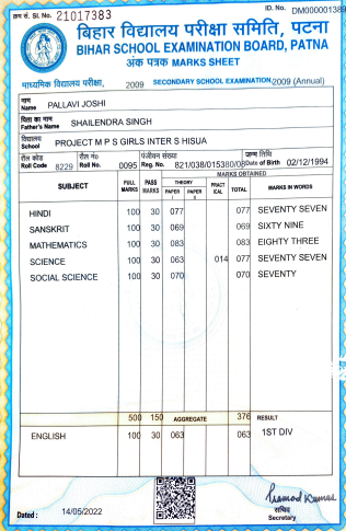 | Exam | Full Marks | Pass Marks | Marks Obtained |