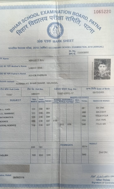 | Exam | Full Marks | Pass Marks | Marks Obtained |