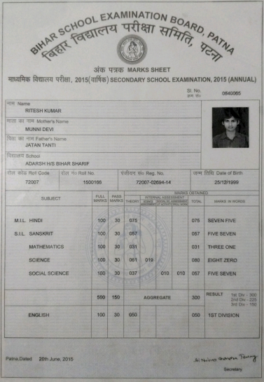 | Exam | Full Marks | Pass Marks | Marks Obtained |
