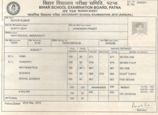 | Exam | Full Marks | Pass Marks | Marks Obtained |