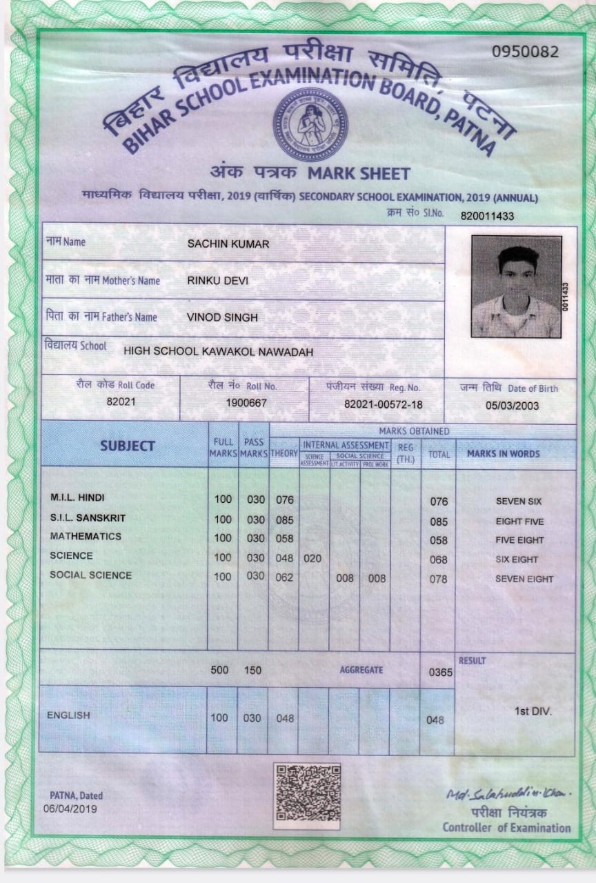 | Exam | Full Marks | Pass Marks | Marks Obtained |