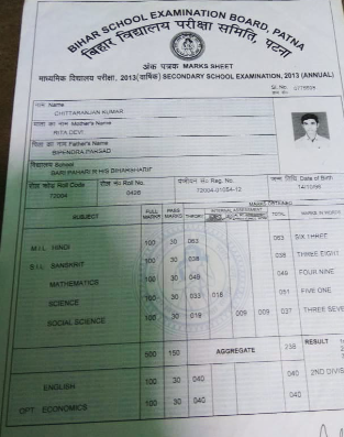 | Exam | Full Marks | Pass Marks | Marks Obtained |